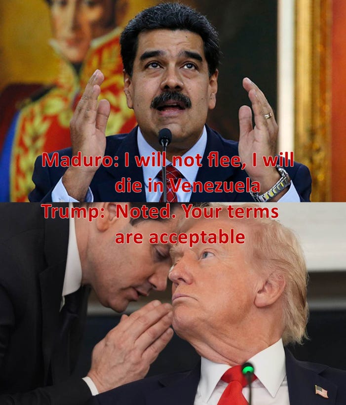 I have no idea if he is correct. I expect he is, but it doesn’t matter because President Trump has decided that Maduro was not going to reform himself and that the US was going to do it for him.