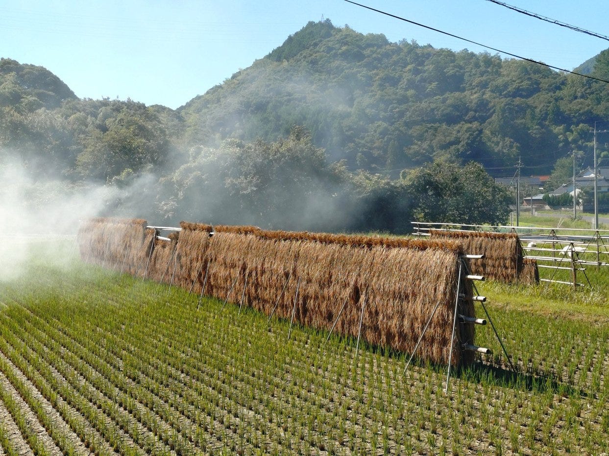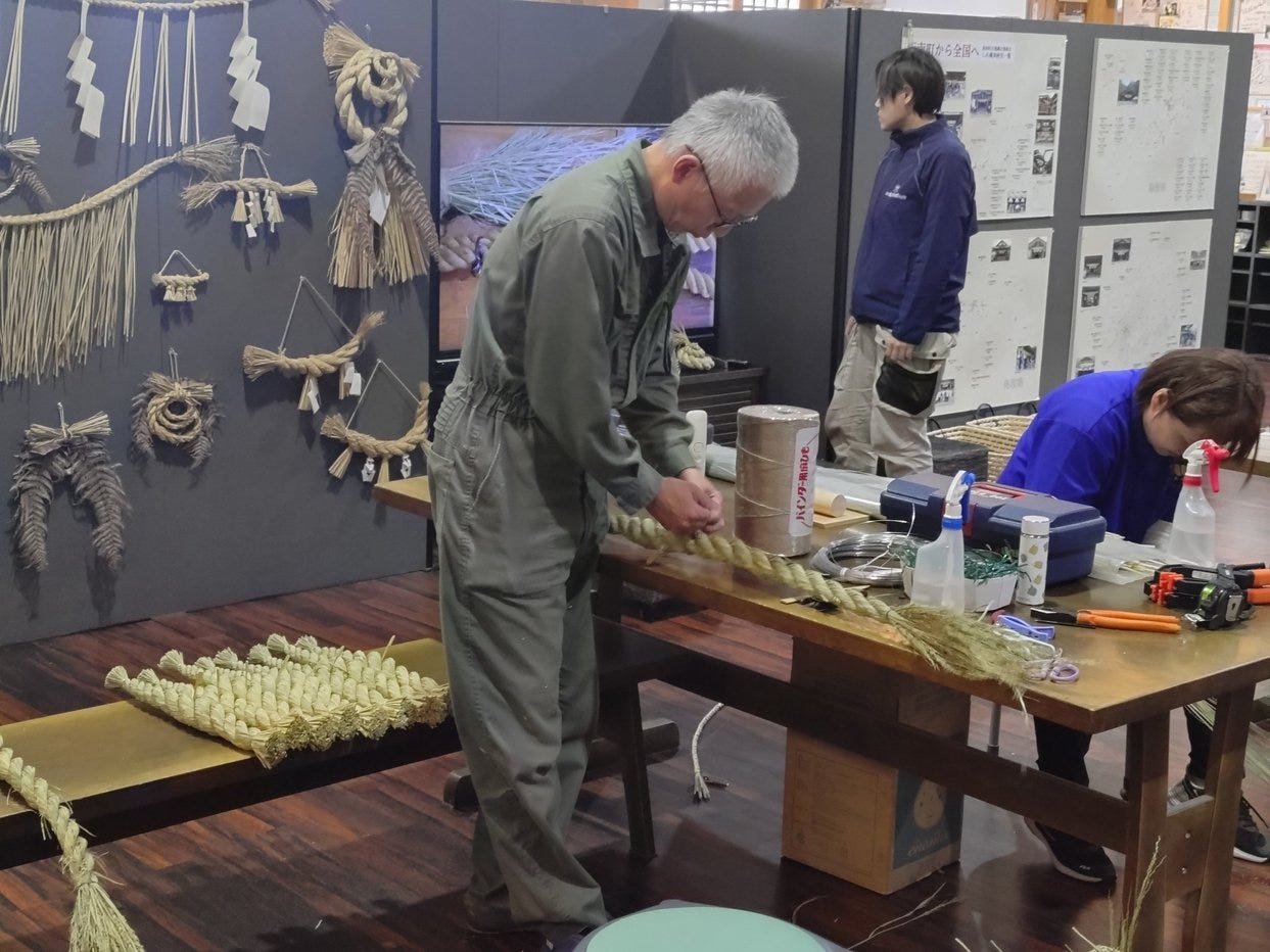 That same smell is stronger and more long-lasting when the straw is brought indoors to make things from it such as the Shimenawa ropes that hang from shrines and shrine gates